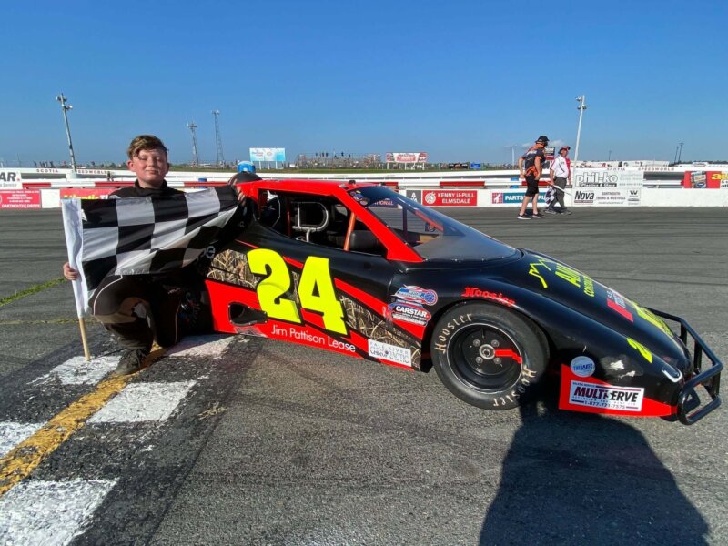 The Fall River Chiropractic-sponsored no. 24 of Ayden Christensen of Windsor Junction picked up where he left off at Scotia Speedworld on Aug. 13 during CARSTAR Weekly Racing Series Bandolero action with another trip to Victory Lane atop the podium.
