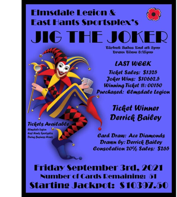 For more information on Jig the Joker or what’s happening at the Legion, checkout their Facebook page – https://www.facebook.com/Elmsdale48 .