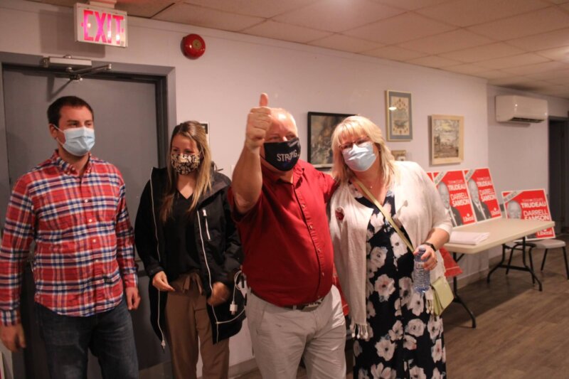 The third term MP, who calls Fall River home, entered the Waverley Legion buoyed by his wife Faye and children to a small, but appreciative crowd who gave him a large applause. He greeted friends, campaign workers, including Duncan Robertson and Marni Tuttle, who ran for the provincial MLA spot in Waverley-Fall River-Beaver Bank, and Sandra Carr among some.