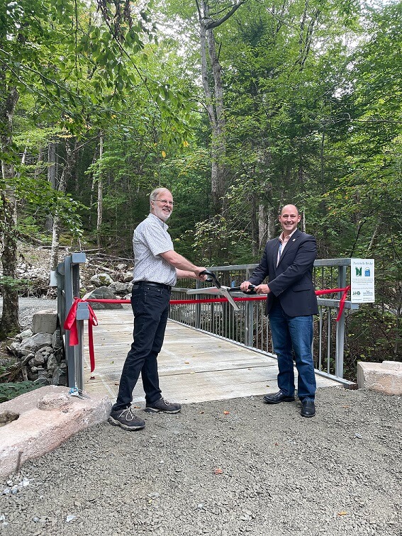 Environment and Climate Change Minister Tim Halman and Shubenacadie Canal Commission Chair, Sylvain Allaire were onsite to cut the ribbon and invite guests to cross the bridge and walk the new trail. It is located near Joe Street and just down from Spider Lake subdivision.