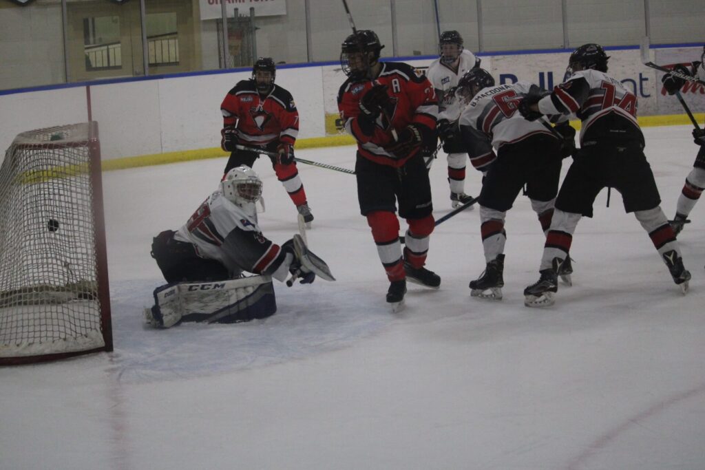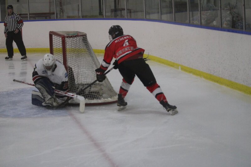 Chenhall also was unlucky on one goal as it appeared he had it, but it was still visible and loose and the Pens player pounced on it getting it behind the netminder. Chenhall and other Miner players pleaded briefly with the ref he had it covered but to no avail.