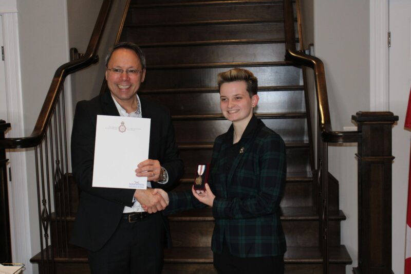 Sarah MacDonald-Miles of Fall River dedicated her Platinum Jubilee medal to her Aunt “Janie” (Sarah Jane was her name), after whom she was named. Her aunt passed away recently and was an inspiration for her, being one of the first to support her social entrepreneur business Links of Love.
