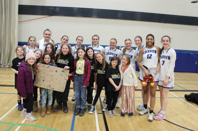 After the game, the young fans gave Ellie Lancaster, named player of the game for Lockview, their handmade sign and then the Dragons rewarded their support with a team photo together.
