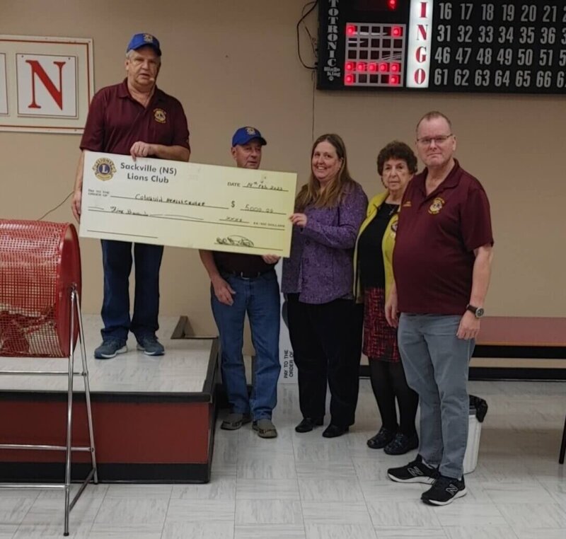 Earlier this week, members of the Sackville Lions club presented the Health Centre Foundations Stacey Chapman with a cheque towards a Blanket Warmer.