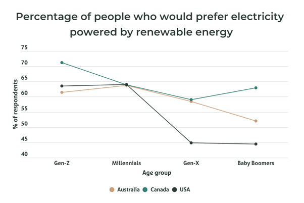 Canadians were the most likely to favour renewables, followed by Aussies and Americans.