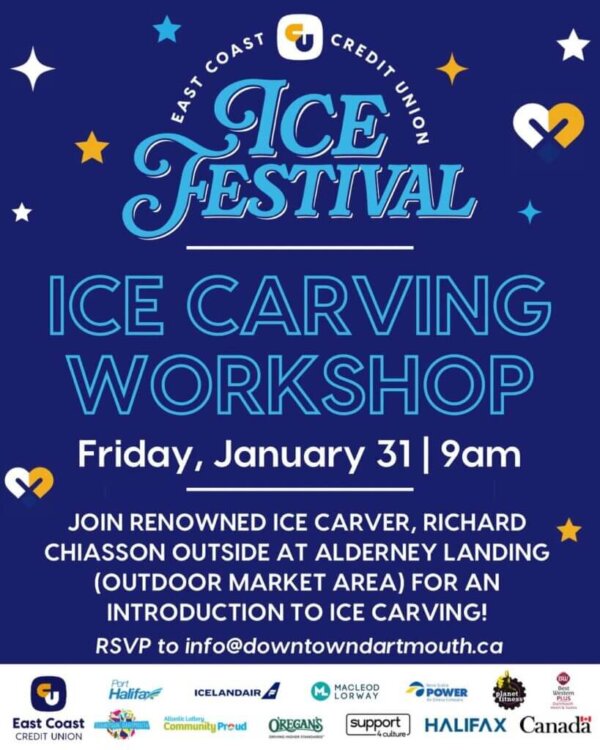 The festival, put on in association with the Downtown Dartmouth Business Commission, will have renowned carver, Richard Chiasson of Ice Création Glace as a part of the East Coast Credit Union Ice Festival