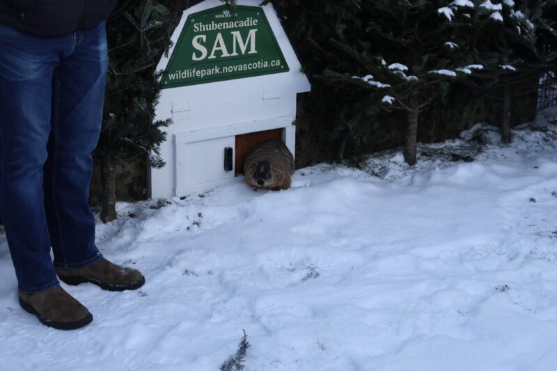 SHUBENACADIE: A large crowd of approximately 150 people–the largest in recent years, officials said–came out to the Shubenacadie Provincial Wildlife Park on a bitterly cold early Sunday morning Feb. 2 to hear what Shubenacadie Sam’s prediction would be on Groundhog Day.
