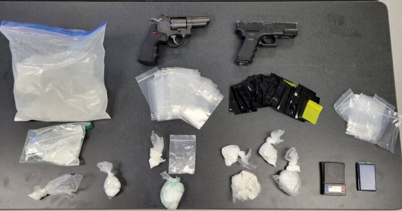 During a search of the property, officers seized a quantity of cocaine, scales, drug paraphernalia and two replica firearms.