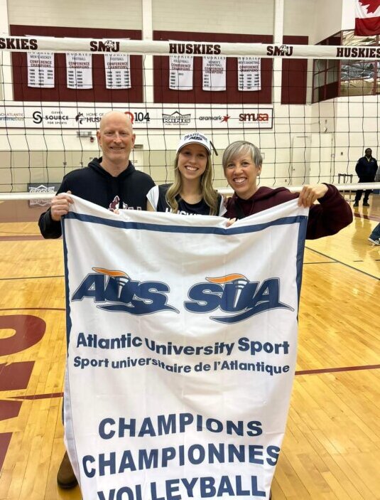In a year that Saint Mary’s Athletics is celebrating 50 years of Women in Sport, two Huskies women’s teams won AUS Championships on the same day, with the volleyball team joining the women’s basketball team that won their third straight title earlier in the day at the Scotiabank Centre.