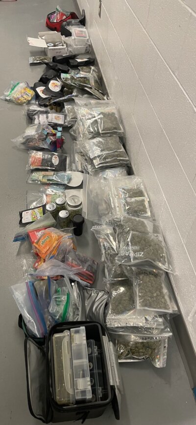 During a search of the vehicle officers found six pounds of fresh cannabis, cannabis edibles, liquid cannabis, shatter, cash and a cell phone.
