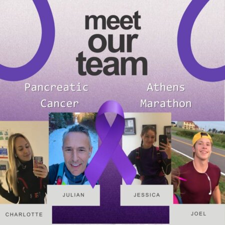 The Warr family—Charlotte, Julian, Jessica and her boyfriend Joel—will be taking part in the Athens Marathon in support of Pancreatic Cancer.