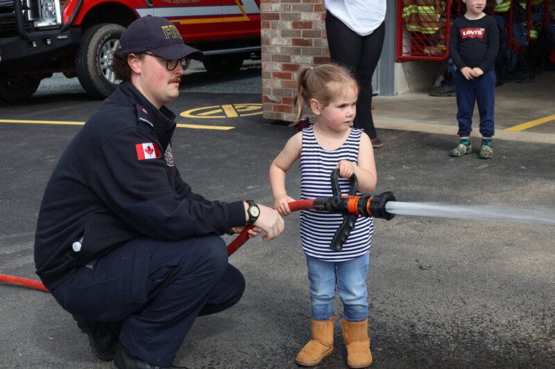 Besides the papers and explanation of the self-assessment, there were tours of the fire trucks and the mock house fire game where kids got to use the fire hose to knock down the flames, and a BBQ courtesy of Withrow’s.