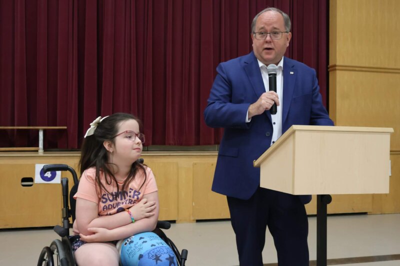At the assembly, Charlee and her peers at the school learned from Hants East MLA John A. MacDonald that the province would contribute $150,000 towards the accessible playground construction. The school had raised $32,000 through fundraisers with the PTA and SAC, along with local sponsors.