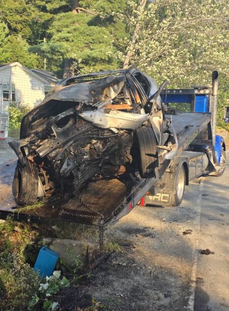The car he was driving, a Hyundai Sonata, went off the road in the 1400 block of Waverley Road hitting a tree with hard impact. That impact saw the car catch fire quickly, even spreading into the nearby dry woods.