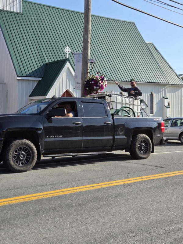 This trailer is purpose-built to water the flower baskets hung along Main Street (Highway 2).