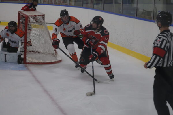 Fintan Boudreau earned the goaltending win between the pipes stopping 34 of 37 pucks sent his way. The Pens fired 42 pucks on Sackville goalie Leaf Korthals.