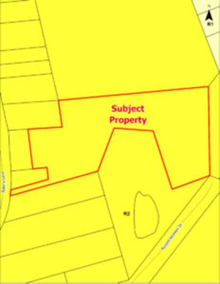 The total area of the subject property is 1.44 hectares. The lot has frontage on Bakery Lane. The property is designated Established Residential Neighbourhood Designation and zoned Two Dwelling Unit Residential Zone.