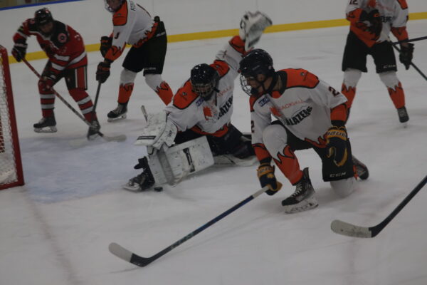 Fintan Boudreau turned away 21 of 23 shots he faced, while Leaf Korthals faced almost 60 pucks from the Pens, stopping 50 in playing the full game.