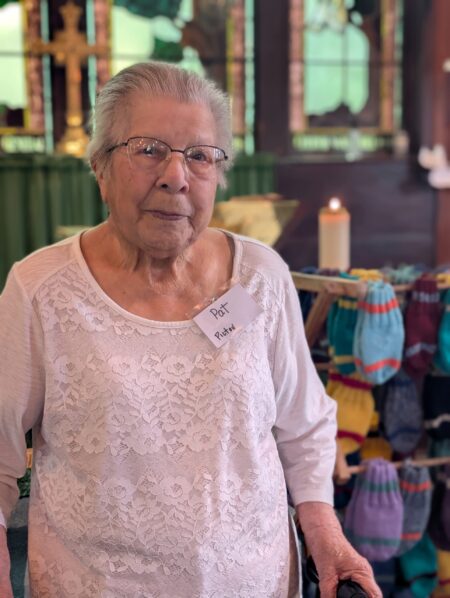 I met her on my first Sunday morning presiding at St. Margaret’s Anglican Church in Oakfield. She was sitting quietly in a pew beside her daughter Sue Morrison, a few metres from the 69 pairs of mittens she’d made for school children in the Annapolis Valley.
