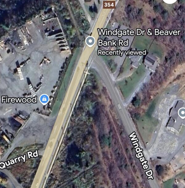 The Windgate Drive–Beaver Bank Road intersection is located on the main arterial route into Beaver Bank and serves as a key connector to Fall River and Windsor Junction.