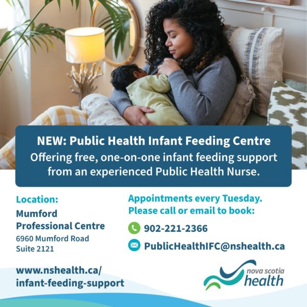 Beginning this month, parents and caregivers can access specialized, one-on-one feeding guidance at the Public Health Infant Feeding Centre, offered weekly at the Mumford Professional Centre (6960 Mumford Road, Halifax).