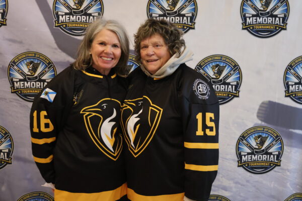 During the ceremony, a special presentation of two EHMHA jerseys with their last names and numbers on the back was made to Mabel Smith, Jeff’s mother, and Edna Ettinger, Trevor’s mom, acknowledging the many years of support and dedication they have given to the sport and the community.