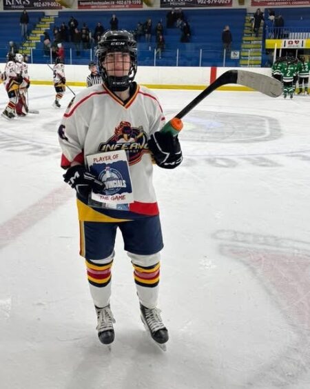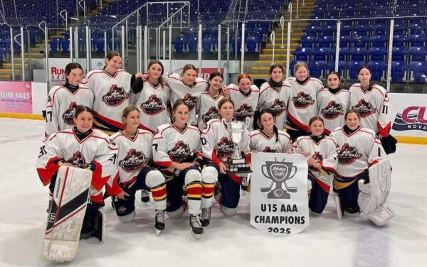 Goalie Kennedy Rees, Claire Umlah, a defenceman, and defenceman Blair Livingstone, of Nine Mile River, helped their Inferno squad to a 2-1 win over the Cape Breton Blizzard in the Hockey Nova Scotia provincial final of the U-15 AAA Girls division on the weekend.